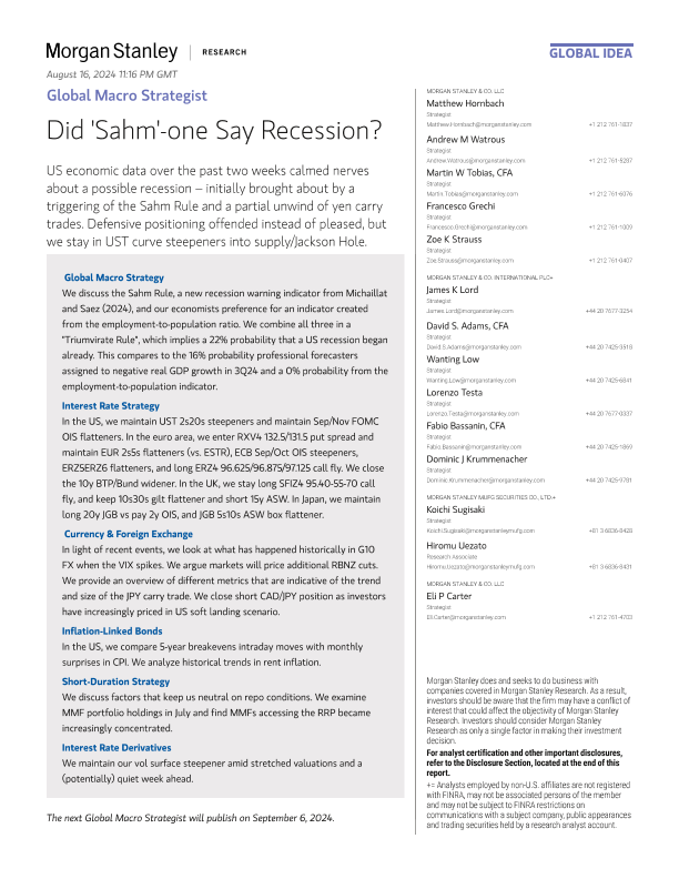 【Morgan Stanley】【20240824】Did 'Sahm'-one Say Recession?-87页