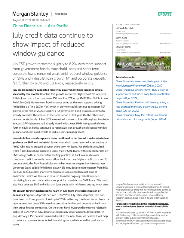 【Morgan Stanley】【20240701】China Financials July credit data continue to show impact of reduced window guidance-11页