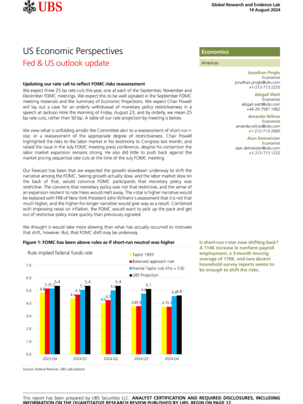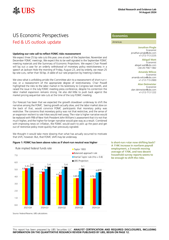 【UBS Securities LLC】【20240814】US Economic Perspectives Fed & US Outlook Update-15页