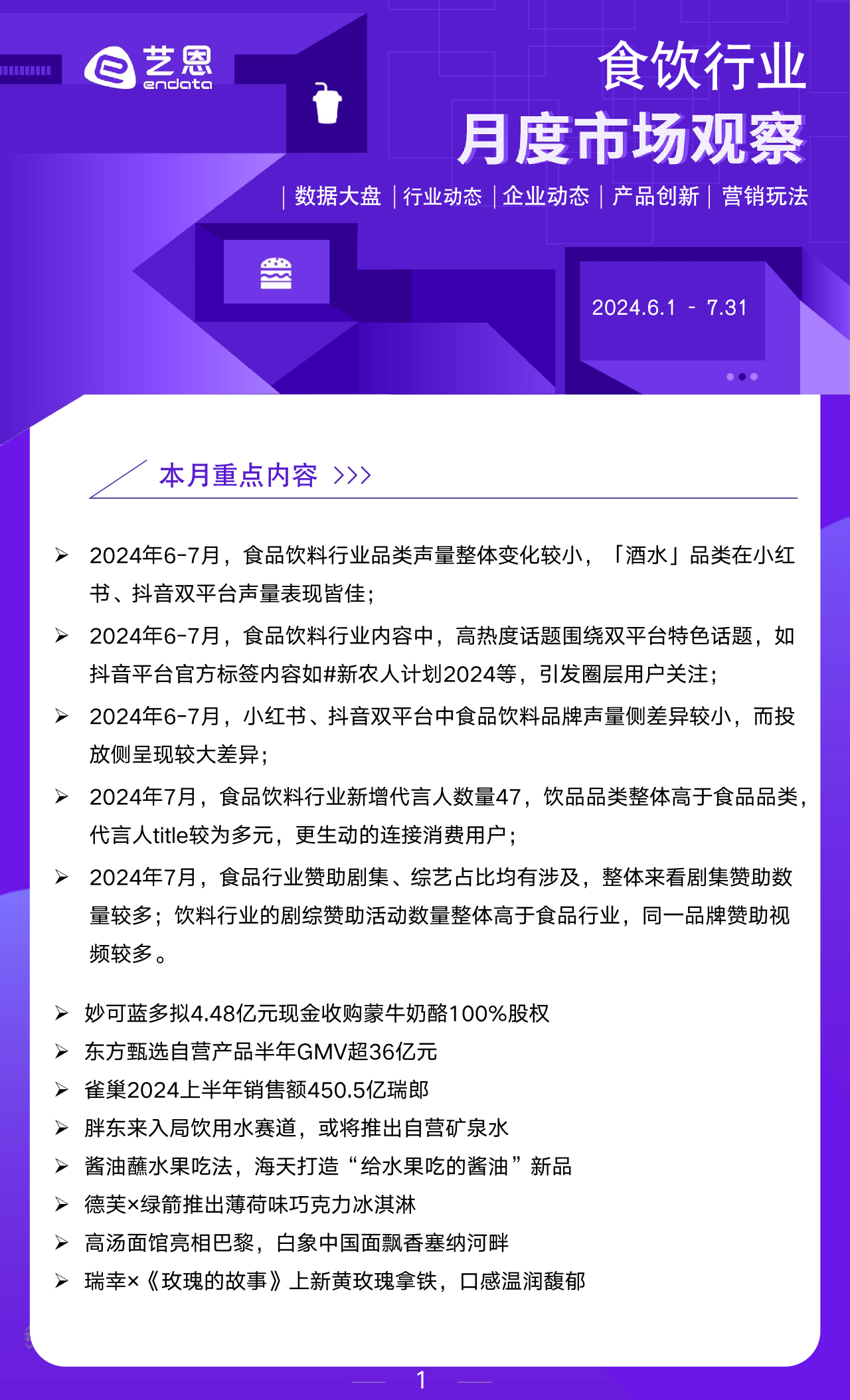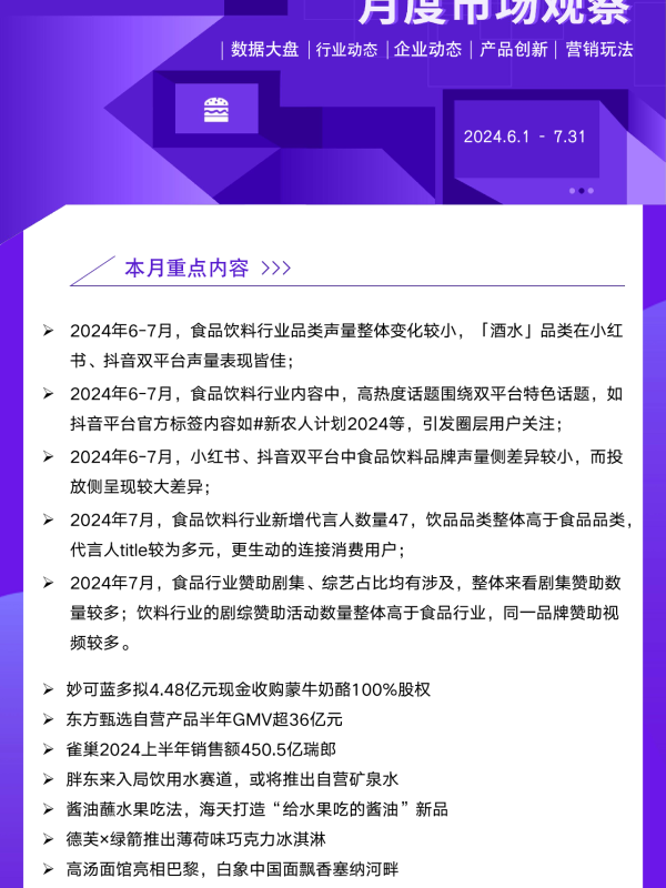 【艺恩 ENDATA Inc.】【20240801】2024年6-7月食饮行业市场观察-18页