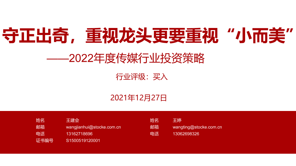 【浙商证券】【20211227】2022年度传媒行业投资策略:守正出奇,重视龙头更要重视“小而美”-45页