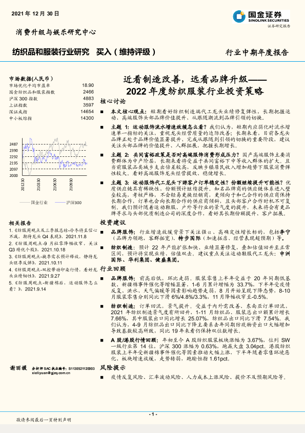 【国金证券】【20211230】2022年度纺织服装行业投资策略:近看制造改善,远看品牌升级-19页