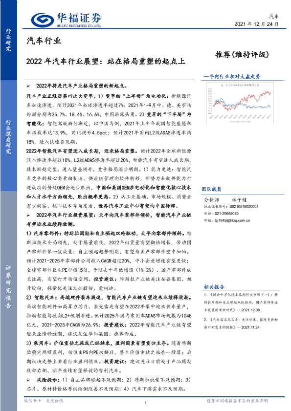 【华福证券】【20211224】2022年汽车行业展望:站在格局重塑的起点上-27页