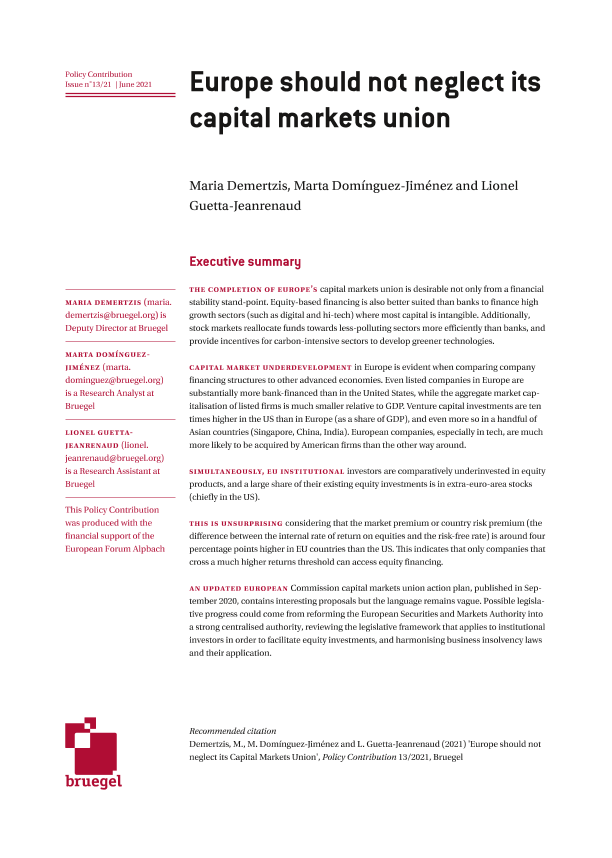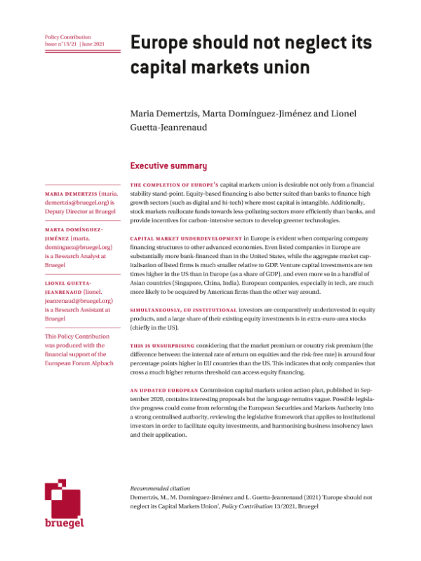 【布鲁盖尔研究所】【202106】欧洲不应忽视其资本市场联盟-19页