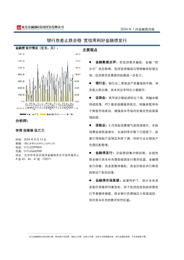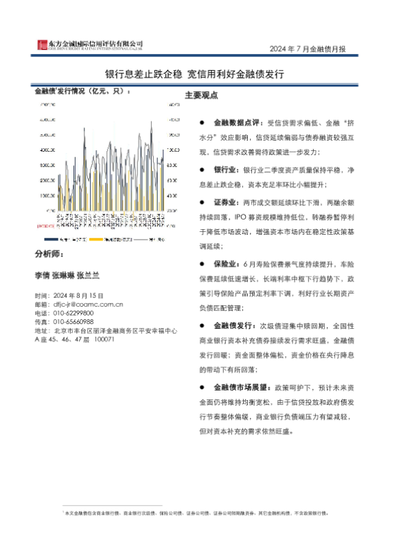 【东方金诚】【20240815】2024年7月金融债月报:银行息差止跌企稳,宽信用利好金融债发行-11页