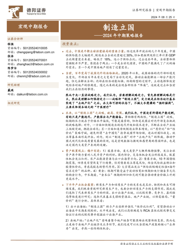 【德邦证券】【20240825】2024年中期策略报告:制造立国-106页