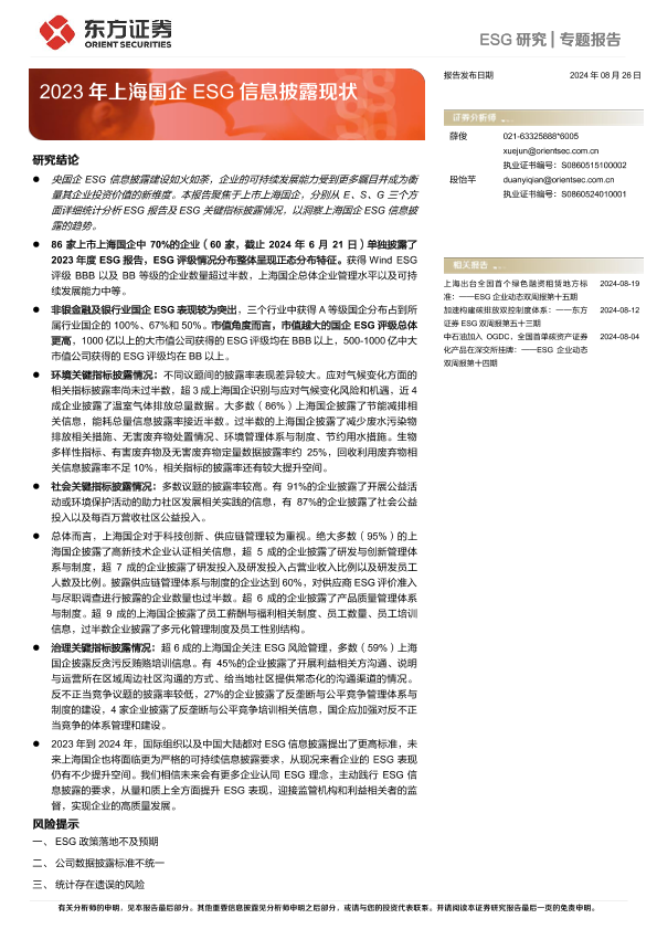 【东方证券】【20240826】ESG研究专题报告:2023年上海国企ESG信息披露现状-28页