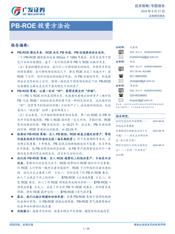 【广发证券】【20240827】PB-ROE投资方法论-24页