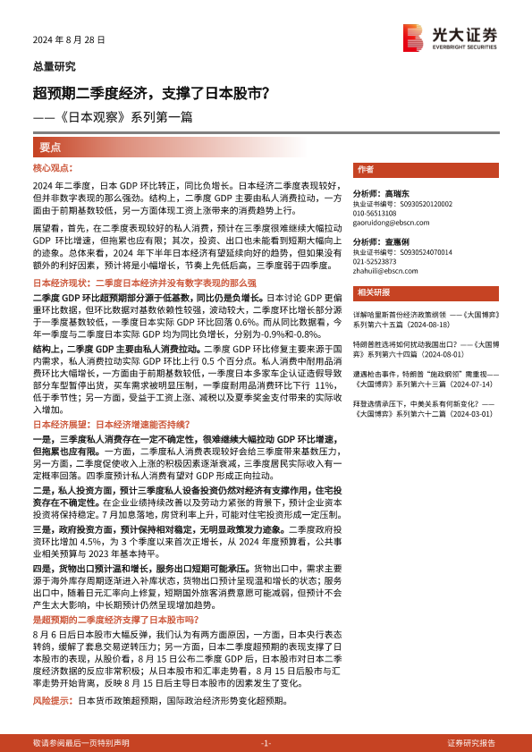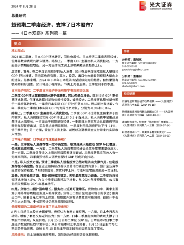 【光大证券】【20240828】《日本观察》系列第一篇:超预期二季度经济,支撑了日本股市?-11页