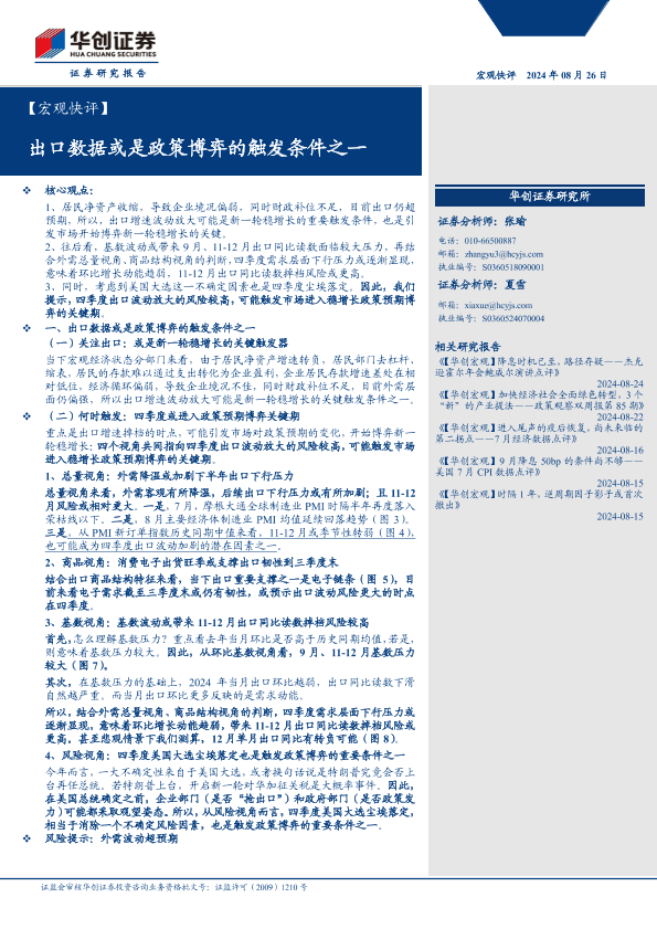 【华创证券】【20240826】出口数据或是政策博弈的触发条件之一-10页