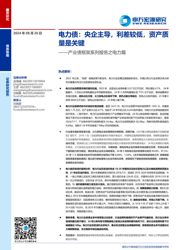 【申万宏源】【20240826】产业债框架系列报告之电力篇-电力债:央企主导,利差较低,资产质量是关键-19页