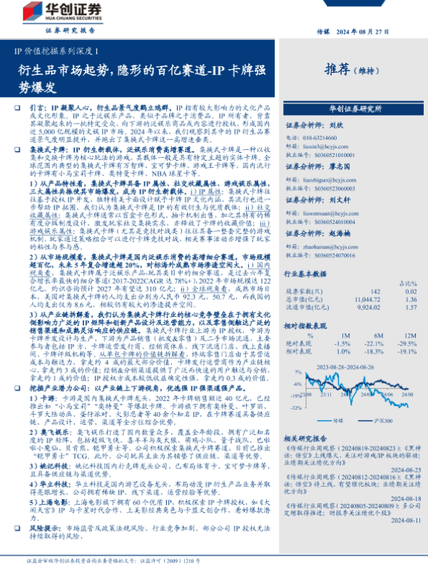 【华创证券】【20240827】传媒行业IP价值挖掘系列深度I:衍生品市场起势,隐形的百亿赛道,IP卡牌强势爆发-33页