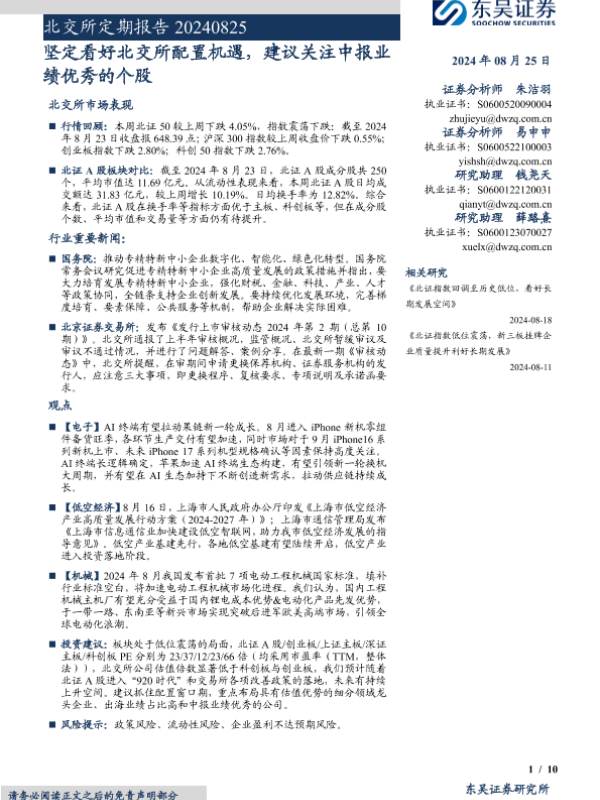 【东吴证券】【20240825】北交所定期报告:坚定看好北交所配置机遇,建议关注中报业绩优秀的个股-10页