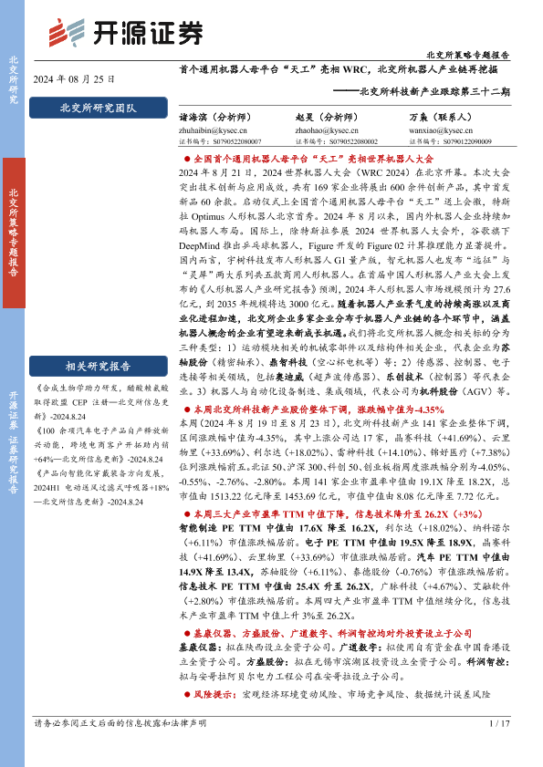 【开源证券】【20240825】北交所科技新产业跟踪第三十二期:首个通用机器人母平台“天工”亮相WRC,北交所机器人产业链再挖掘-17页