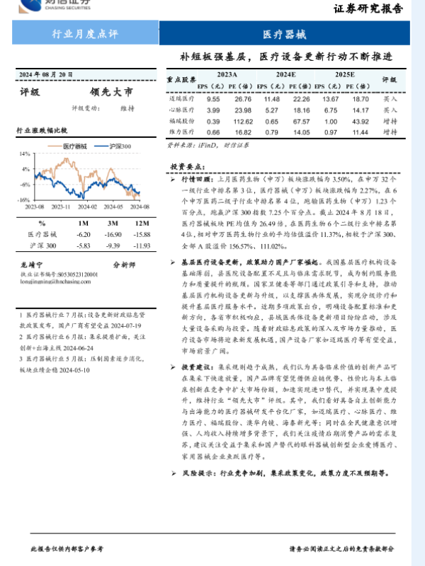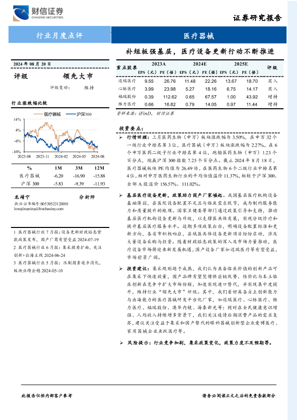 【财信证券】【20240820】医疗器械行业月度点评:补短板强基层,医疗设备更新行动不断推进-10页