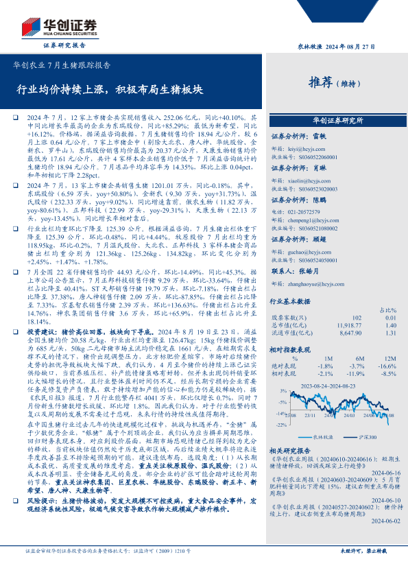 【华创证券】【20240827】华创农业行业7月生猪跟踪报告:行业均价持续上涨,积极布局生猪板块-11页