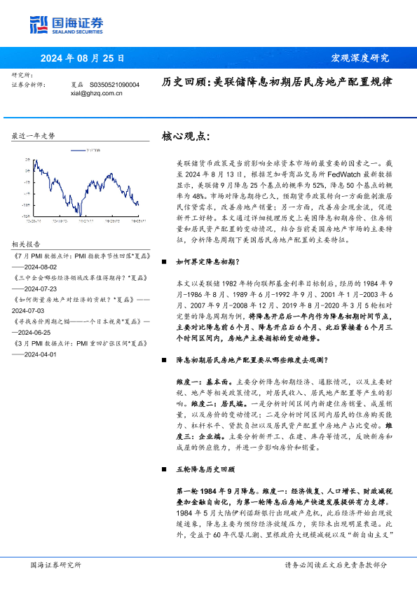 宏观经济 居民资产配置 房地产市场 美联储 降息周期