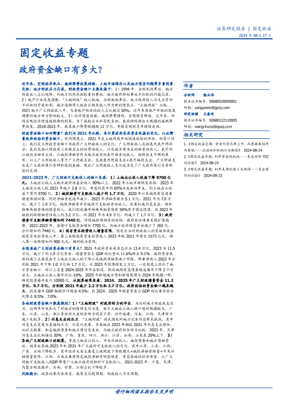 【国盛证券】【20240827】固定收益专题:政府资金缺口有多大?-23页