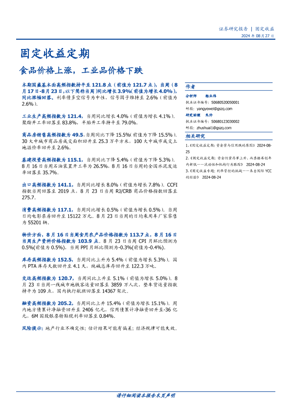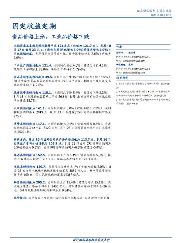 【国盛证券】【20240827】固定收益定期:食品价格上涨,工业品价格下跌-20页