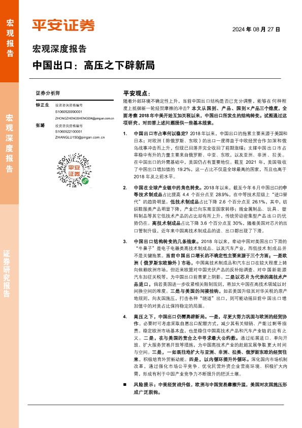 【平安证券】【20240827】中国出口:高压之下辟新局-22页