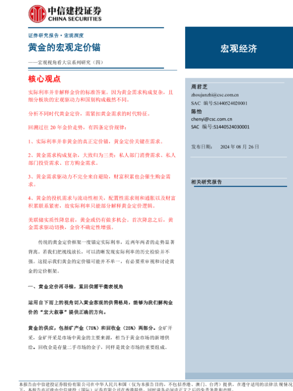 【中信建投证券】【20240826】宏观视角看大宗系列研究(四):黄金的宏观定价锚-29页