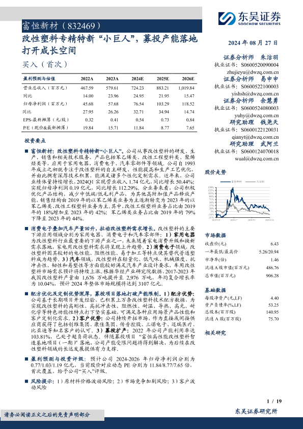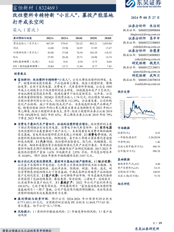 【东吴证券】【20240827】富恒新材(832469)改性塑料专精特新“小巨人”,募投产能落地打开成长空间-19页