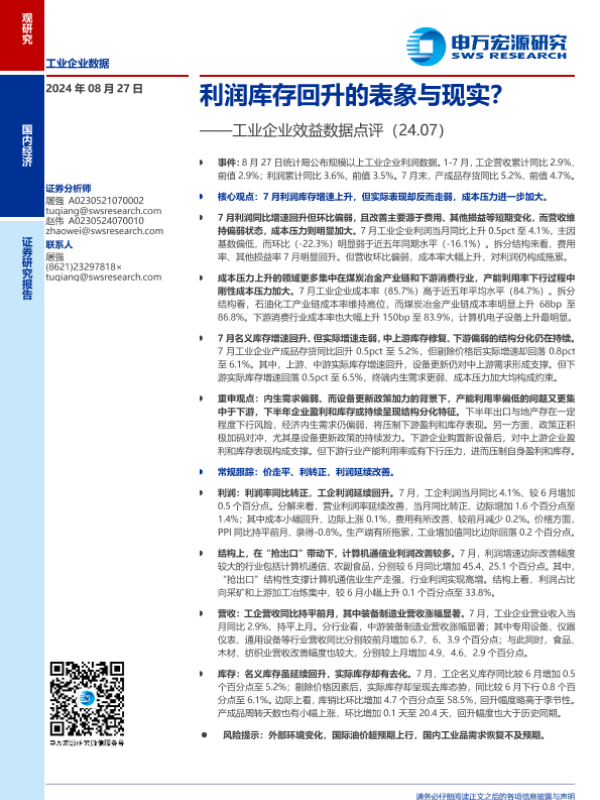 【申万宏源】【20240827】工业企业效益数据点评:利润库存回升的表象与现实?-11页