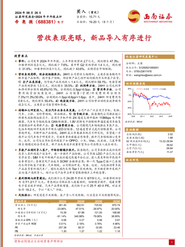 【西南证券】【20240826】帝奥微(688381)2024年半年报点评:营收表现亮眼,新品导入有序进行-12页