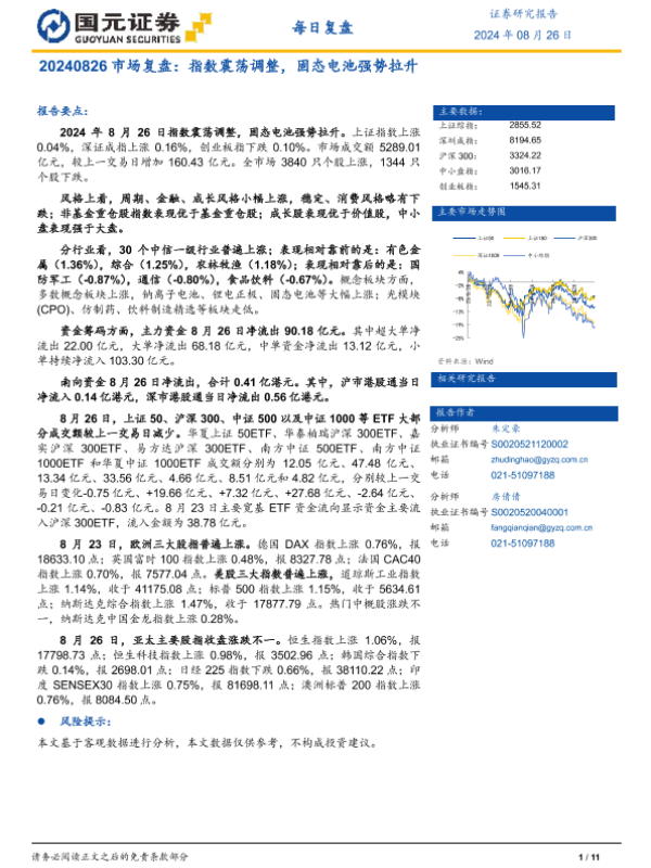 【国元证券】【20240826】市场复盘:指数震荡调整,固态电池强势拉升-11页