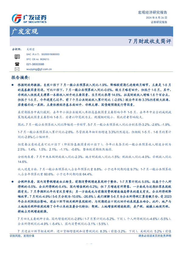 【广发证券】【20240826】广发宏观:7月财政收支简评-10页