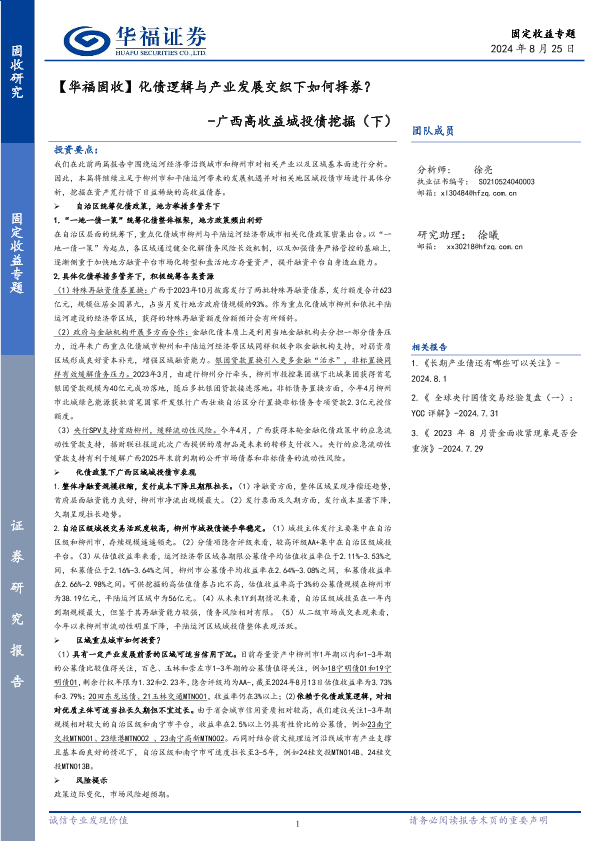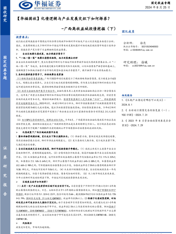 【华福证券】【20240825】广西高收益城投债挖掘(下):【华福固收】化债逻辑与产业发展交织下如何择券?-12页
