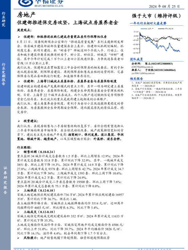 【华福证券】【20240825】房地产行业定期报告:住建部推进保交房攻坚,上海试点房屋养老金-14页