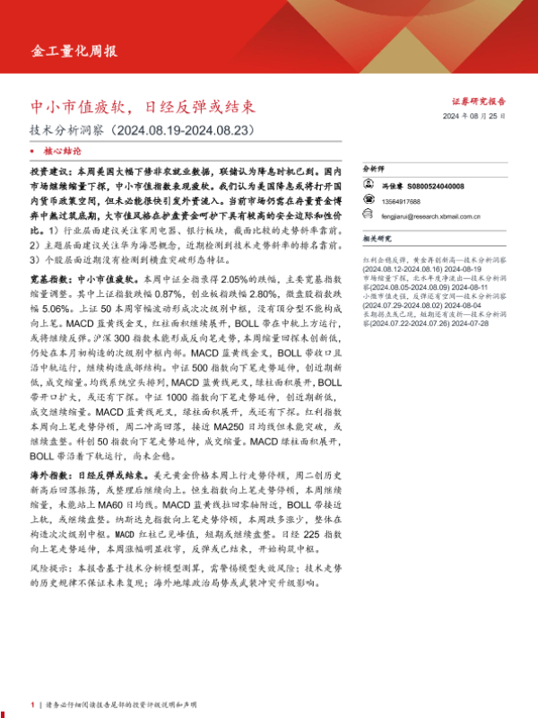 【西部证券】【20240825】技术分析洞察:中小市值疲软,日经反弹或结束-12页
