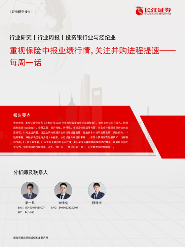 【长江证券】【20240825】投资银行业与经纪业行业每周一话:重视保险中报业绩行情,关注并购进程提速-16页