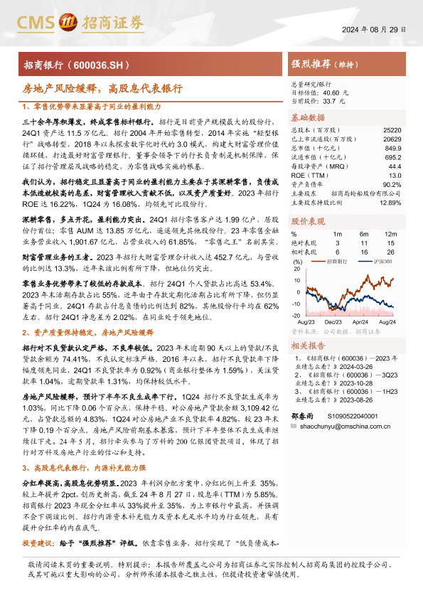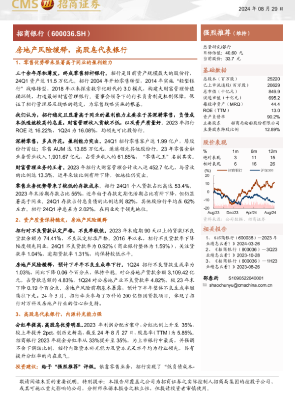 【海通证券】【20240829】招商银行(600036)房地产风险缓释,高股息代表银行-32页
