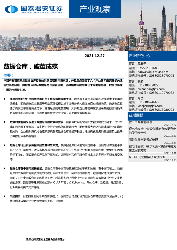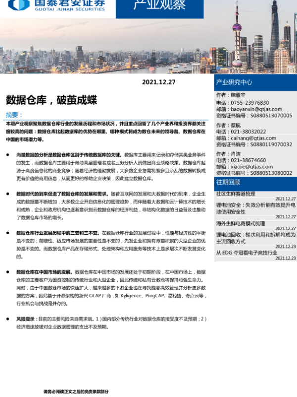 【国泰君安证券】【20211227】产业观察:数据仓库,破茧成蝶-19页