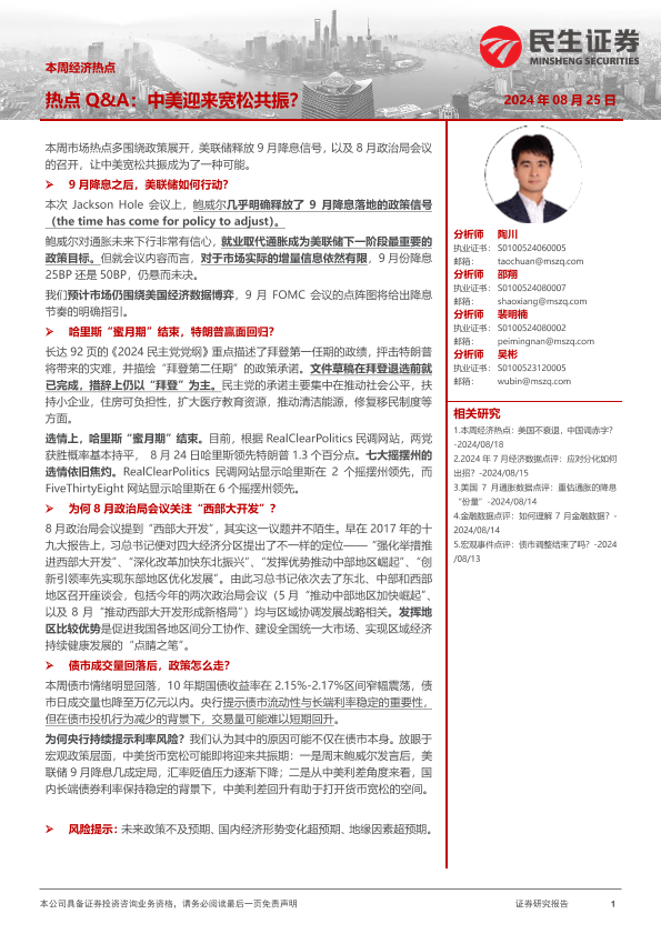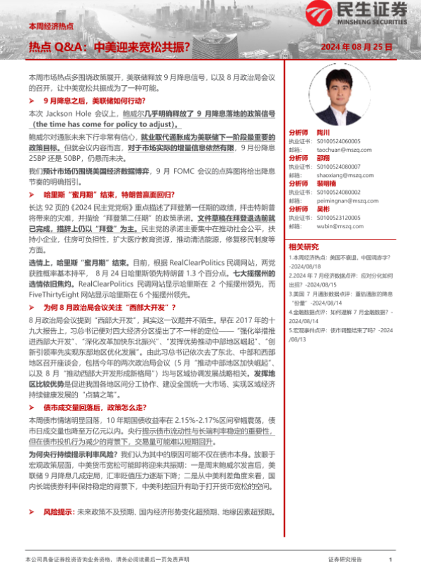【民生证券】【20240825】本周经济热点-热点Q&A:中美迎来宽松共振?-12页