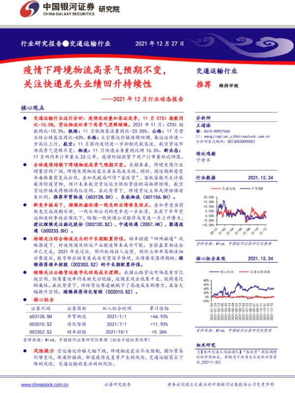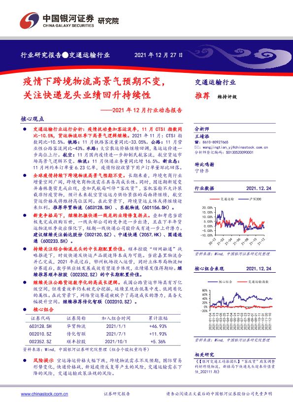 【银河证券】【20211227】交通运输行业2021年12月行业动态报告:疫情下跨境物流高景气预期不变,关注快递龙头业绩回升持续性-39页