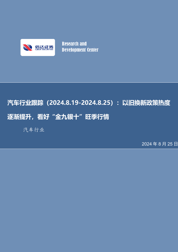 【信达证券】【20240825】汽车行业跟踪(2024.8.19-2024.8.25):以旧换新政策热度逐渐提升,看好“金九银十”旺季行情-19页
