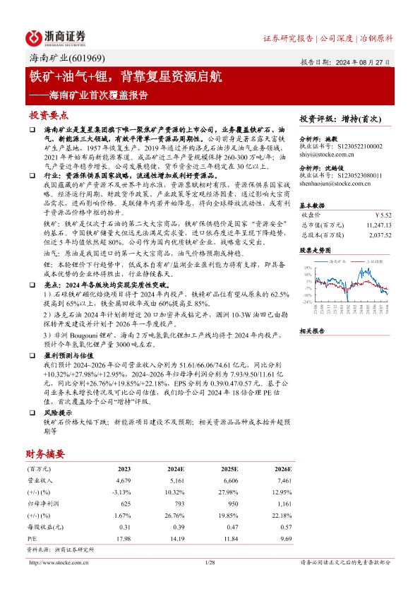 【浙商证券】【20240827】海南矿业(601969)首次覆盖报告:铁矿+油气+锂,背靠复星资源启航-28页