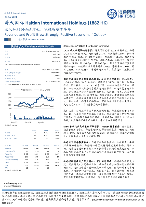 【海通国际】【20240828】海天国际(1882.HK)收入和利润快速增长,积极展望下半年-12页