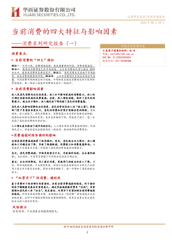 【华西证券】【20240829】消费系列研究报告(一):当前消费的四大特征与影响因素-16页