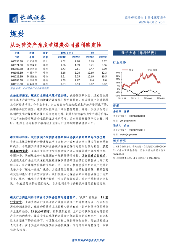 【长城证券】【20240826】煤炭行业深度报告:从运营资产角度看煤炭公司盈利确定性-32页