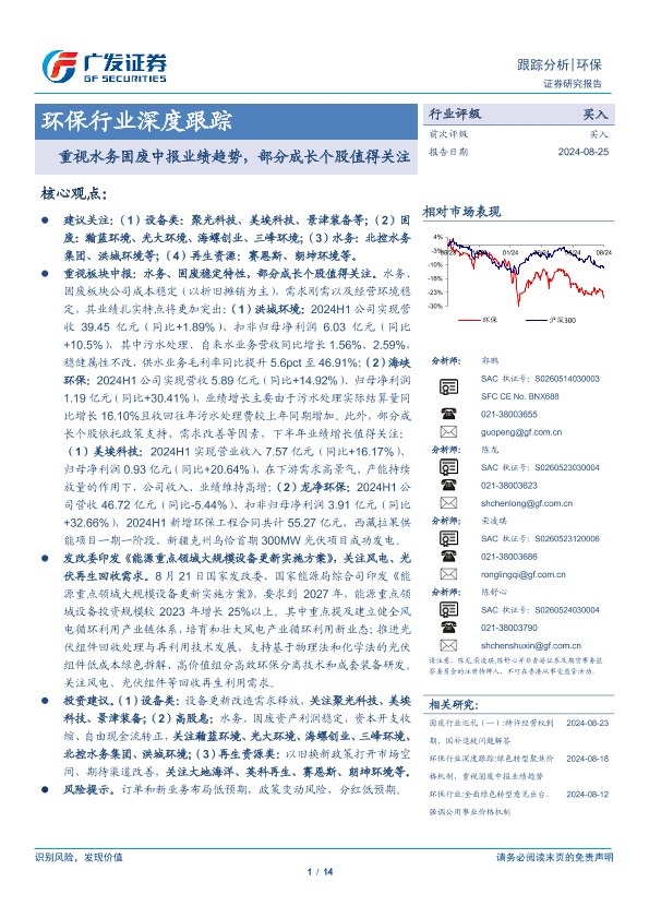 【广发证券】【20240825】环保行业深度跟踪:重视水务固废中报业绩趋势,部分成长个股值得关注-14页