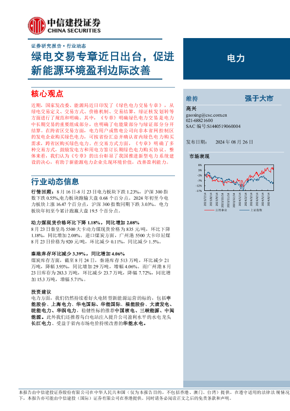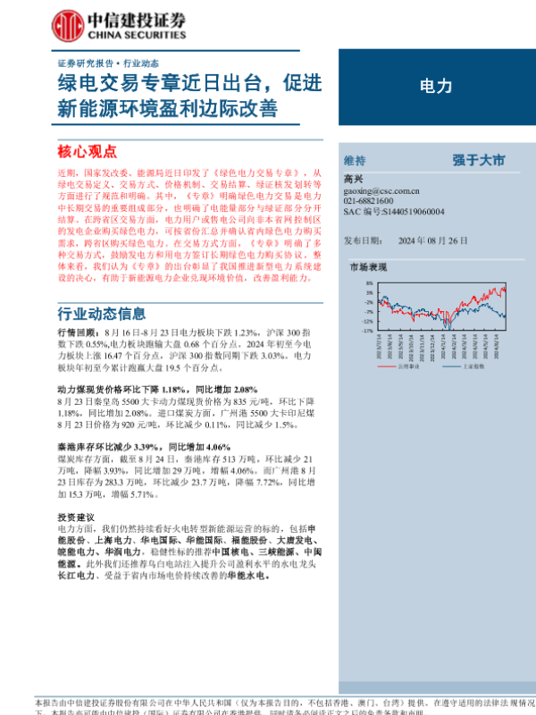 【中信建投证券】【20240826】电力行业:绿电交易专章近日出台,促进新能源环境盈利边际改善-16页