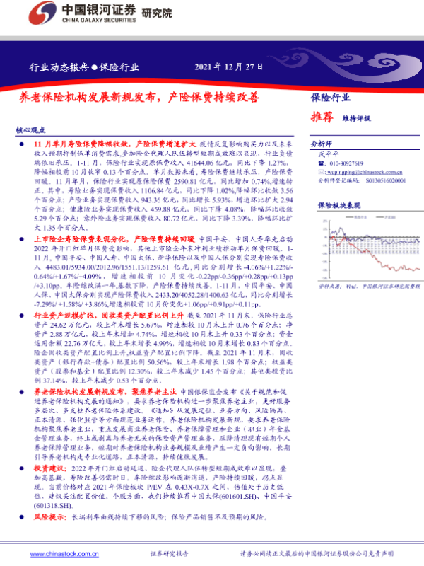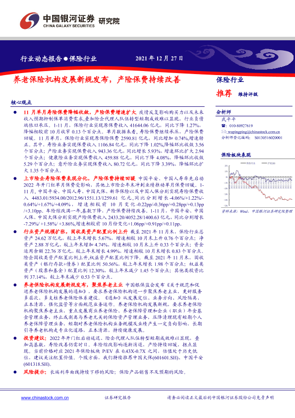 【银河证券】【20211227】保险行业:养老保险机构发展新规发布,产险保费持续改善-18页