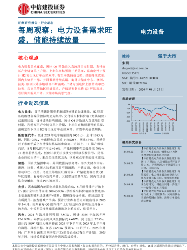 【中信建投证券】【20240825】电力设备行业每周观察:电力设备需求旺盛,储能持续放量-28页