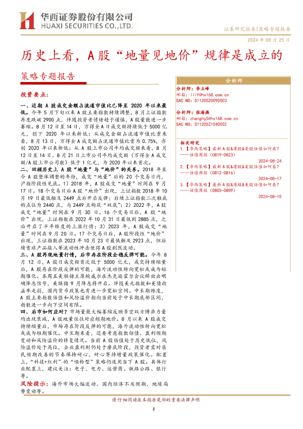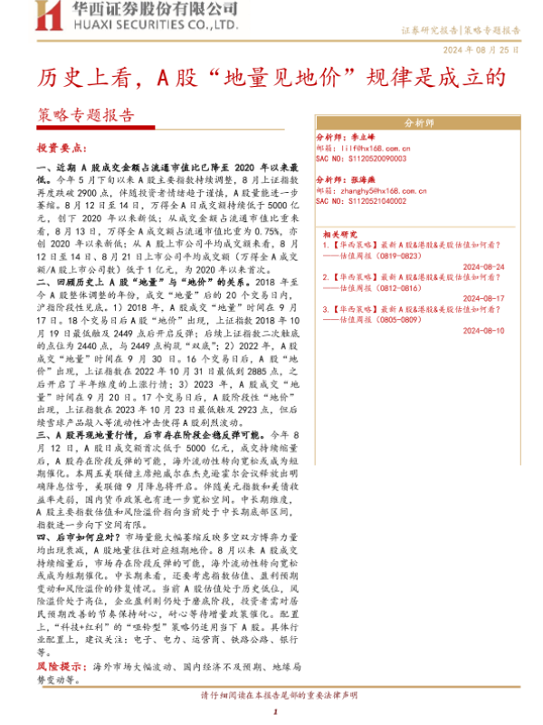 【华西证券】【20240825】策略专题报告:历史上看,A股“地量见地价”规律是成立的-10页