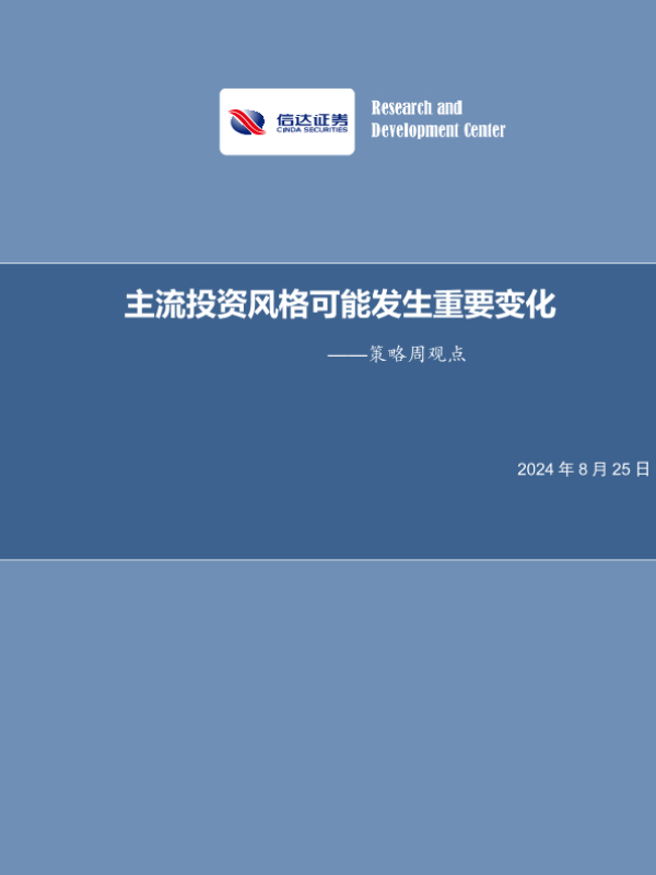 【信达证券】【20240825】策略周观点:主流投资风格可能发生重要变化-13页