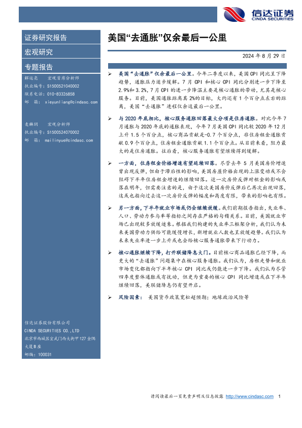 【信达证券】【20240829】美国“去通胀”仅余最后一公里-10页